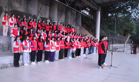在外国语学院合唱团的带领下,全体师生齐唱《我和我的祖国》。嘹亮的歌声响彻校园,润泽每一个人的心灵。外国语学院的莘莘学子以美妙的歌声来表白祖国:祝伟大的祖国繁荣富强!