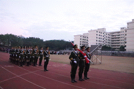 (通讯员:谭宝仪、钟莹)为培育和践行社会主义核心价值观,展示我院大学生积极向上的精神风貌,引导广大师生以中华民族复兴为己任,以实际行动弘扬爱国主义精神,外国语学院于12月7日早在大足球场开展“我为祖国升国旗”主题教育活动。副校长肖海及相关部门领导出席升旗仪式,升旗仪式由外国语学院辅导员苏蒙莎主持。