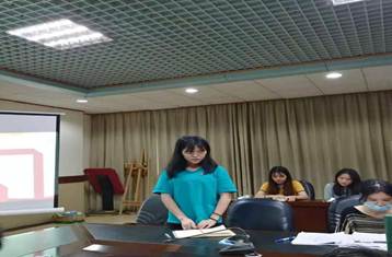 蔡莹敏同志代表外国语学院学生党支部向过去一年辛勤付出的各位党员干事表示衷心的感谢,希望各位党员能够明确自己的工作职责,增强责任意识,也希望能够借此会议认识到自己的不足,努力改正自己的缺点。