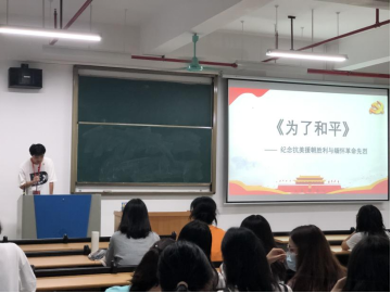 在中国共产党成立100周年的重要历史节点上,为了深入贯彻落实习近平总书记在纪念中国人民志愿军抗美援朝作战70周年大会上的重要讲话精神,增强入党积极分子的爱国爱党情怀,外国语学院学生党支部于10月14日晚在13栋401、402开展《为了和平》纪录片观影活动。学生党支部干事及外国语学院2021年第2期入党积极分子参与此次观影活动,郑霆锋、李溢璘同志主持本次活动。