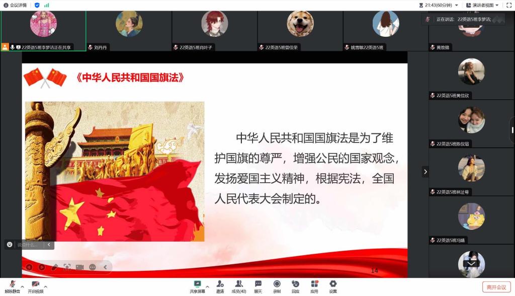 外国语学院召开学习《中华人民共和国国旗法》主题班会