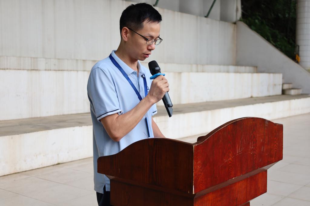 升旗仪式后,外国语学院党总支书记、副院长冉海涛发表讲话。冉书记强调,五星红旗不仅是中华人民共和国的象征和标志,更是亿万中华儿女心中的骄傲与自豪。他表示师生们应始终牢记五星红旗所代表的意义,传承和弘扬爱国主义精神。随后,冉书记向全体师生提出了几点建议和要求。首先,他鼓励大家要坚定自己的理想信念,明确个人的追求目标,并为之不懈奋斗。其次,冉书记指出要深入学习祖国与党的历史,从而培养深厚的爱国主义情怀。最后,冉书记希望师生们发扬奋斗精神,勇于面对挑战和困难。他鼓励大家要用外语讲好中国故事,传播中国文化历史,让世界更加了解中国、认识中国。