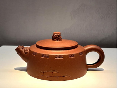其中一个手拉壶融入了大量中国元素,抓住了我们的眼球,壶身小巧,壶身镌以长城,壶流塑以夔龙,壶钮隐以华表。圆浑壶身烘托出数叠弧线之洗练,刚毅墙砖承载着如意云之柔和,济以刚柔,兼以虚实,具“含道应物,澄怀味象”之意味,乃用当代手法表达中华民族之魂,因此此壶称作民族魂。