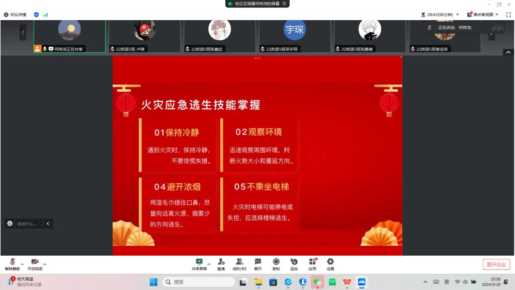 为引导同学们学习安全知识,进一步增强安全意识,保障同学们在国庆假期的安全,2024年9月28日晚,外国语学院召开“国庆假期安全教育”主题班会,我院全体同学参与。