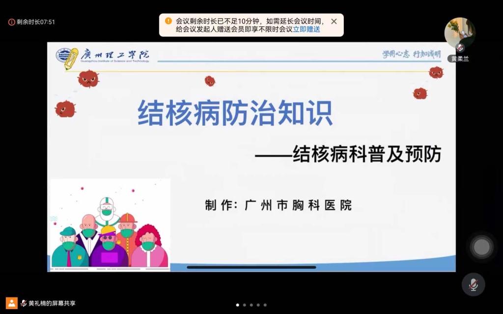 为了进一步加强校园公共卫生安全,提升学生对肺结核等传染病的认识与预防意识,提高学生自我防护能力,11月17日19:00-20:30,外国语学院通过线上线下的方式开展预防肺结核主题班会。我院全体同学参与。