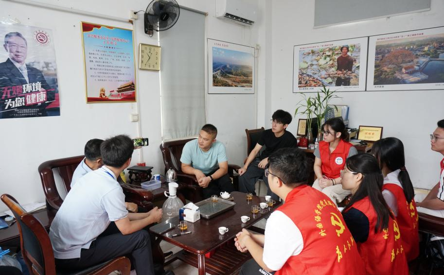 7月14日,在镇团委副书记罗大正、乡村志愿者黄钿钿的协调下,团队与党群服务中心主任吴明俊、电子商务协会党支部书记施伟浩深入交流,共商助农良策。实践团实地考察了集观光、采摘、体验于一体的旅游型黄皮农庄生态庄园,这种“以果促旅、以旅兴农”的融合创新模式,为团队思考如何借力直播等新媒体手段讲好钱东农产品故事提供了鲜活样本和深层启发。