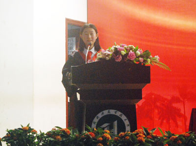 | 毕业生代表彭安妮发言 |