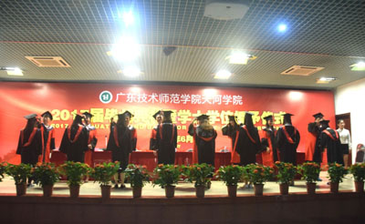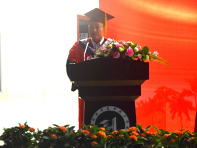 院长朱甫道教授代表学院学位委员会宣读了《广东技术师范学院天河学院关于授予陈金明等4294名同学学士学位的通报》并代表学院作了热情洋溢、饱含深情的讲话。他回首毕业生们在母校挥洒汗水、奋力拼搏的成长历程,殷切希望毕业生们在未来工作中能志存高远,同时又脚踏实地。既要终生学习,又要勇于开拓创新,时刻珍惜和维护母校的声誉,用实际行动践行“落其实者思其树,饮其流者怀其源”,以感恩之心、优异的学习和工作业绩回报父母、老师和亲朋好友。