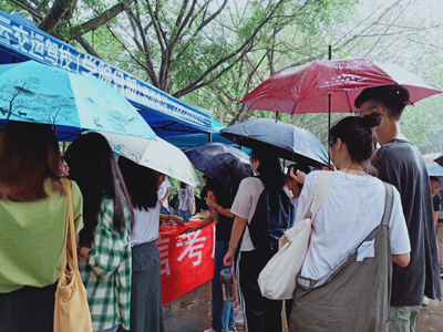 活动当天,长达七米印有“树诚信考风,做诚信学子”的横幅吸引了路过的同学,他们踊跃参与,纷纷在横幅上庄重地签下自己的名字。诚信考试推文集赞领取奖品活动吸引了众多学子参与。志愿者们积极宣传此次活动,协助引导学生,在大雨中坚守,以实际行动践行了党员服务中心“以生为本,服务至上”的宗旨。外国语学院领导、老师们积极参与,宣传推广。