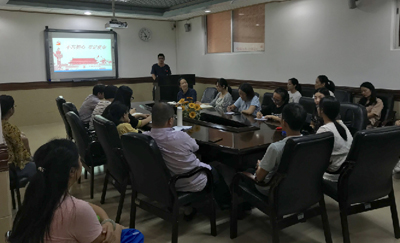 10月17日下午,为落实好“三会一课”制度,扎实推进“不忘初心,牢记使命”主题教育,外国语学院教工党支部在7-322室组织开展“如何做一个好老师”党课教育活动。党课由支部书记蔡岳良主讲,全体教工党员、入党积极分子参加。