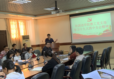 外国语学院教工党支部学习十九届四中全会精神确保主题教育走深走实