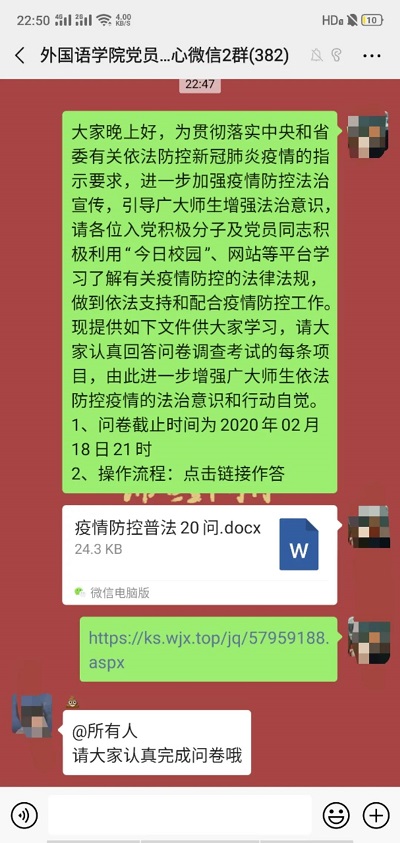 外国语学院党总支开展《关于疫情防控全民公益普法行动问卷调查》