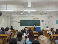 学生第二党支部副书记蔡莹敏提出了本次学习会的意义和目的。她希望同学们能深入学习领会党的十九届六中全会精神,坚定理想信念,感悟党的初心和使命,提高个人思想道德修养,增强学习本领发挥党员的先锋模范作用。