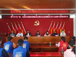 会议的最后一项内容,温玉新书记、温慧君副书记为广州理工·外国语学院颁发为“党旗增辉、为群众解难”的锦旗,为学生志愿者代表们颁发“爱心志愿者”奖状,并共同合影留念。
