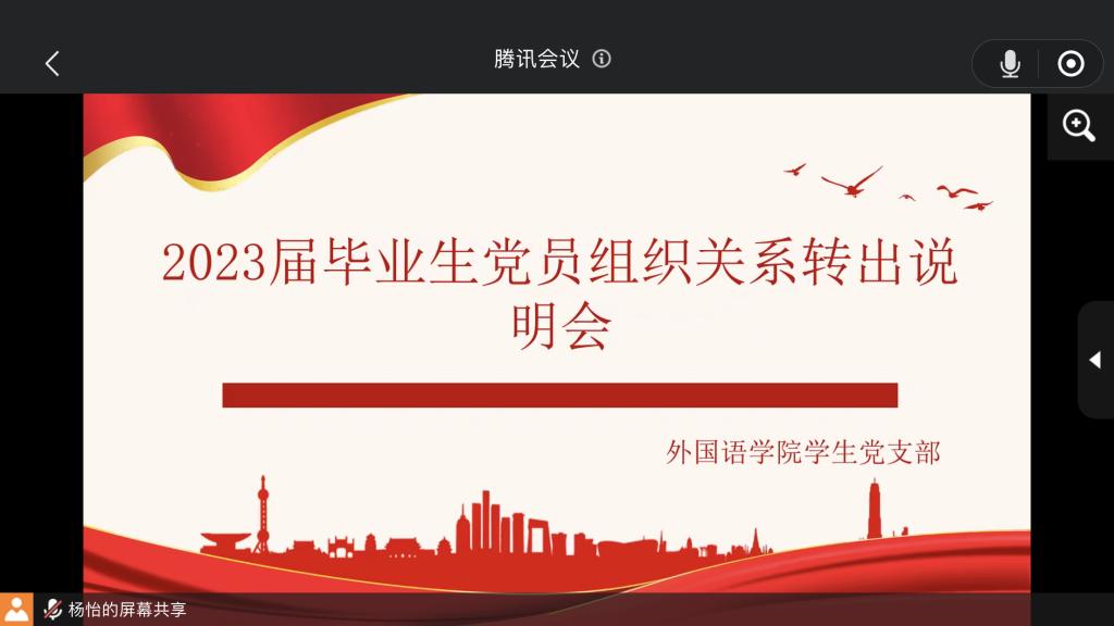 为进一步保持学生党员教育管理的连续性和有效性,确保我院2023届毕业生党员组织关系转接工作顺利进行,5月31日晚,外国语学院学生党支部以腾讯会议的方式开展了2023届毕业生党员组织关系转接说明会。会议由林丹瑩同志主持,全体毕业生党员同志参与。