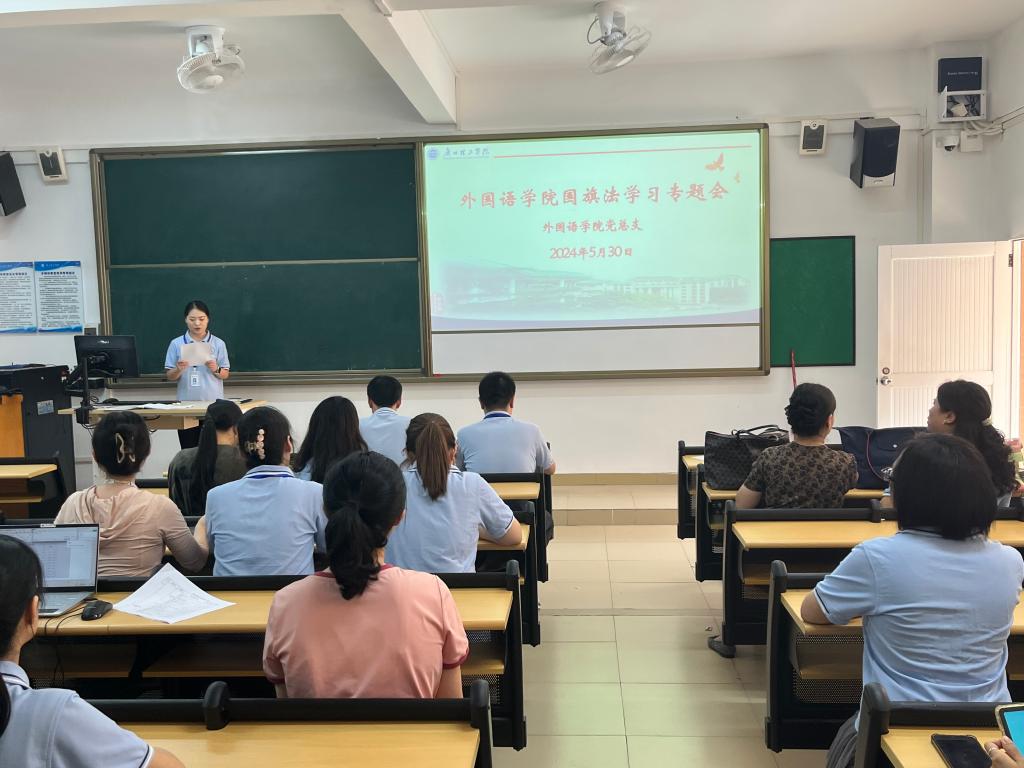 为维护国旗尊严,增强爱国意识,加深教职工党员对《中华人民共和国国旗法》的理解与践行。5月30日下午,外国语学院教工党支部在7栋305教室开展《中华人民共和国国旗法》学习专题会。我院全体教职工党员参加会议。学习会由党总支组织员罗晓博同志主持。