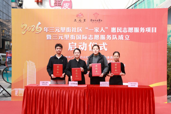 为进一步深化基层治理创新,推动志愿服务国际化、专业化发展,2026年1月17日上午,三元里街社区“一家人”惠民志愿服务项目暨三元里街国际志愿服务队成立启动仪式在柏丽NYC广场C座隆重举行。广州理工学院作为共建高校之一,团总支书记关俊文老师代表外国语学院出席仪式,并现场签署校地共建协议,标志着我院在服务地方、实践育人方面迈出坚实一步。
