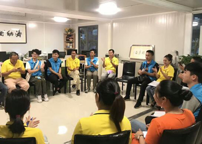 | 跟销实习生与企业员工交流 |
