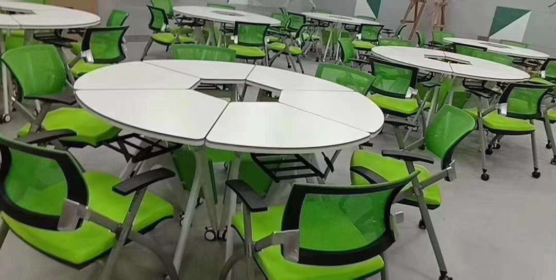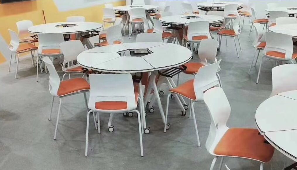 外国语学院于2020年暑期建设的5间讨论式教室,将于9月正式投入使用。讨论式教室将桌椅更换为变形桌椅,可以独立使用,也可将6张桌子围成一个圆桌以展开讨论。与“排排坐”讲授型教室相比,讨论式教室打破了传统教室布局,以围坐一圈的形式促进学生小组学习和讨论式学习。