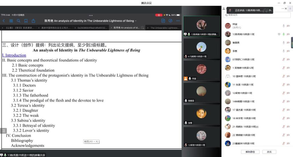 在疫情防控的特殊形势下,在学院领导班子的领导下,外国语学院于11月17日开展了2023届毕业论文开题“云答辩”工作。