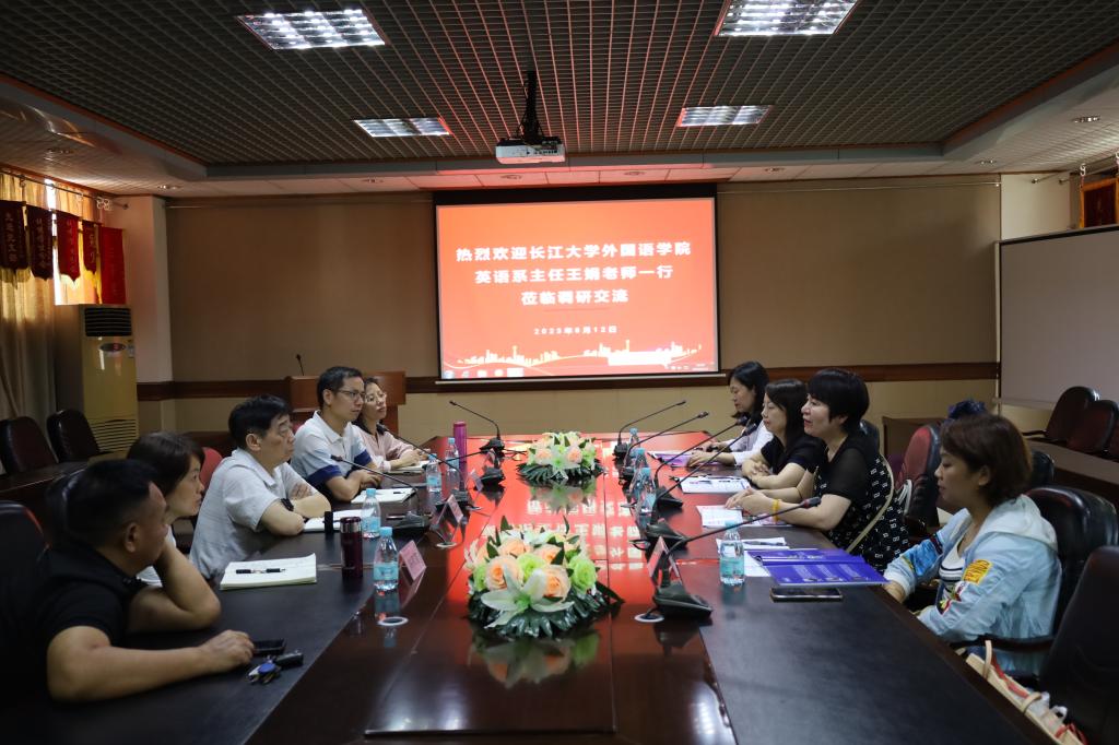 会上,田祥斌院长首先对长江大学外国语学院相关领导老师莅临我院表示了热烈欢迎,接下来介绍了我院的发展历程、学科专业建设现状、教学科研业绩以及学科竞赛成果等。接着,长江大学外国语学院英语系主任王娟介绍了长江大学外国语学院在外语人才培养、实习实践教学以及MTI硕士点建设方面的经验。随后,双方围绕学科建设、人才培养、产教融合、毕业论文指导、论文发表、职称晋升、以及学院管理等方面进行了深入探讨。