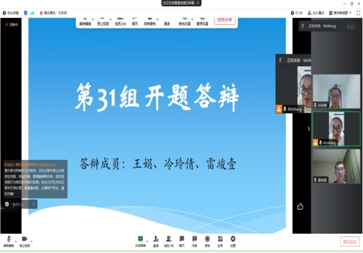 毕业论文开题”云答辩”在同学们及答辩老师共同努力下辛苦顺利完成。希望接下来同学们根据答辩老师建议进行完成开题报告。