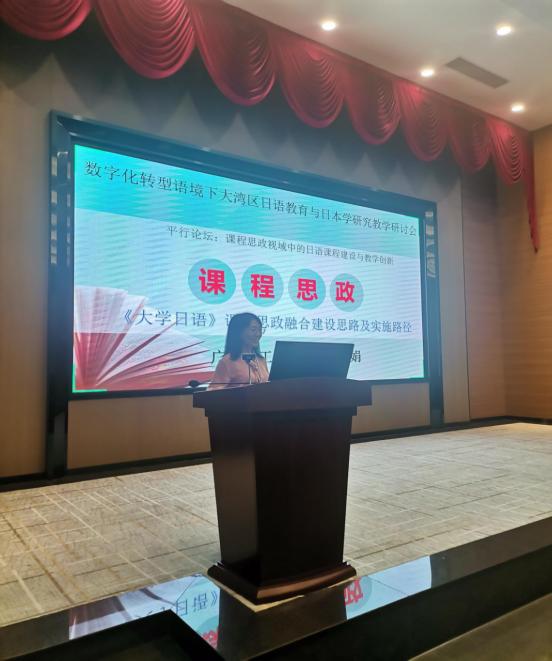 11月10日至12日,数字化转型语境下大湾区日语教育与日本学研究教学研讨会在广州工商学院举办。本次会议由教育部日语专业虚拟教研室主办,以“创新与发展——大湾区日语教育与日本学研究新航向”为主题,接受教育部高等学校外国语言文学类专业教学指导委员会日语分委会和中国日语教学研究会指导。在我校外国语学院日语系黄国山主任的统筹协调和周密安排下,江小娟、杨硕两位老师参加了会议,江小娟副教授在研讨会上作了关于“《大学日语》课程思政融合建设思路及实施路径”的讲座。