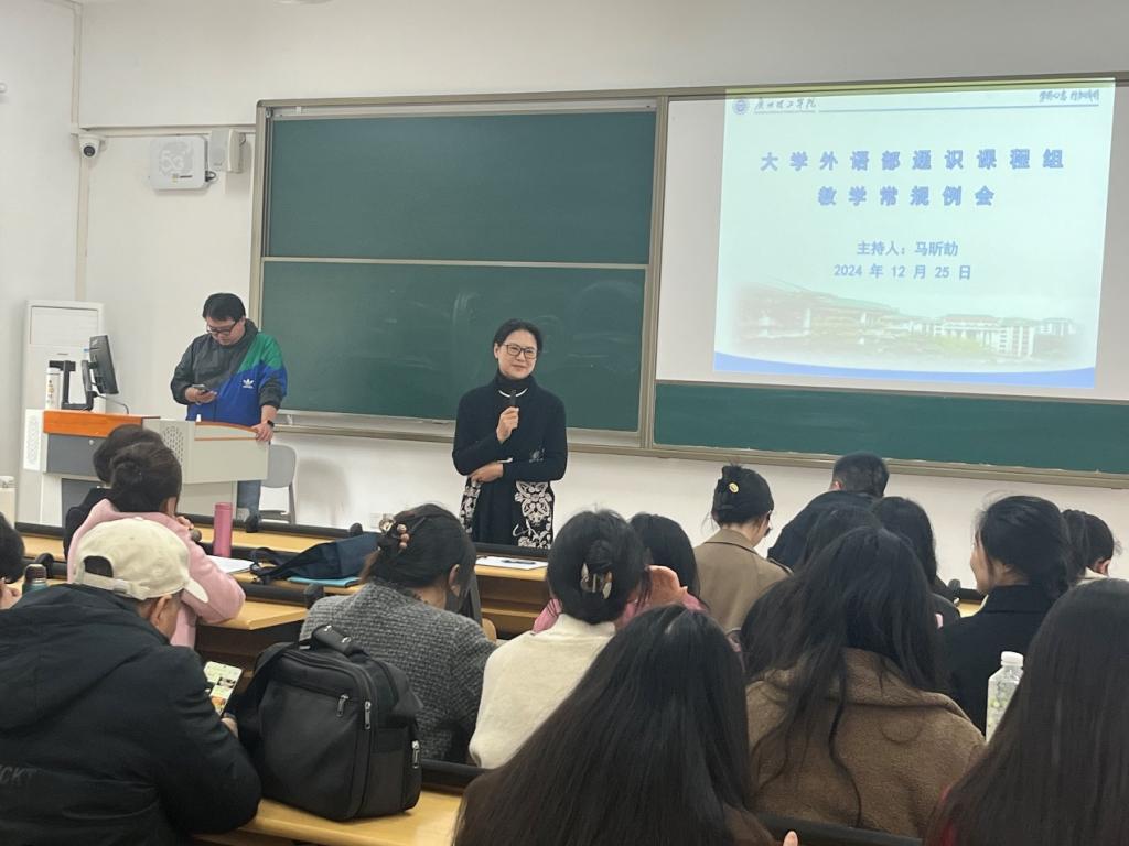 为聚焦学期教学总结与期末工作部署,外国语学院大学外语教学部通识课程组于12月25日在惠州校区召开教学常规例会。外国语学院党总支副书记蔡俊、督导刘惠琴教授、殷宏伟教授和通识课程组的全体教师参加了会议。会议由课程组组长马昕劼老师主持。