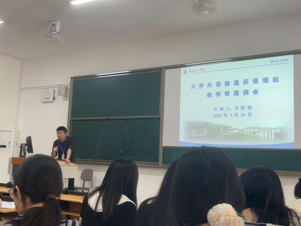 为推动教学与评建常规工作的高质量开展,3月26日,大学外语教学部通识课程组于惠州校区举行春季学期教学常规例会。外国语学院党总支副书记蔡俊、教学督导刘惠琴教授、殷宏伟教授及全体教师参会。会议由大学外语部副主任马昕劼主持。