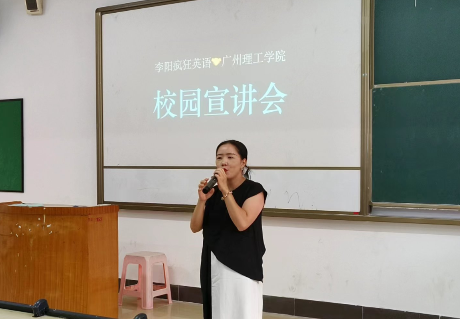 为了让我院学生更好地了解就业形势,提供学生和企业交流的机会。外国语学院于6月20日下午在7栋118课室开展李阳疯狂英语宣讲会。李阳疯狂英语教学主管Sue老师、Kitty老师、辅导员方书靓老师出席本次宣讲会。