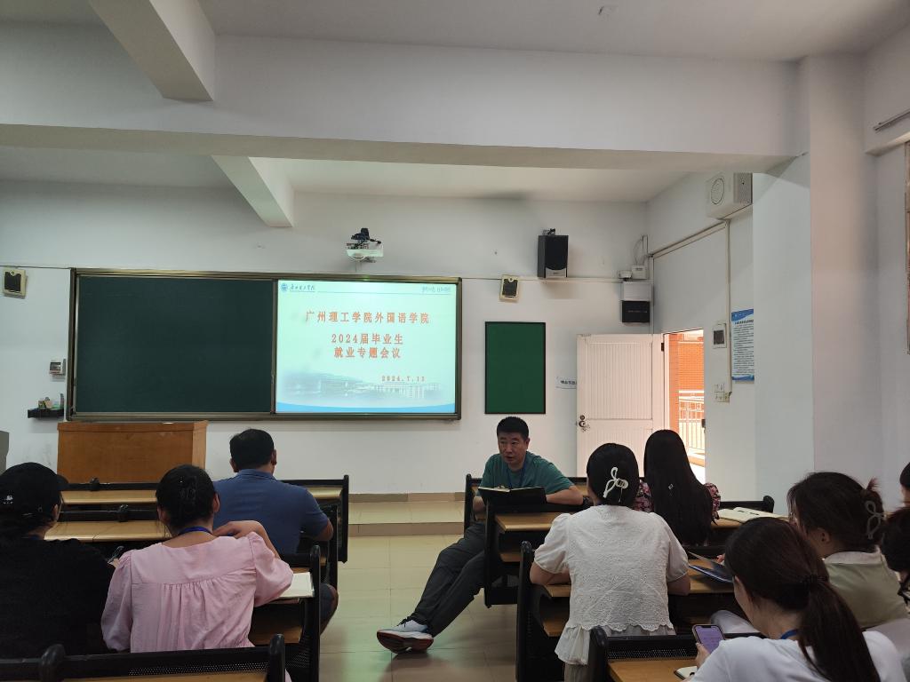 为继续推进我院2024年毕业生就业工作,将就业工作做实做细,外国语学院于7月12日在7-315召开2024届毕业生就业专题会议。外国语学院党总支副书记蔡俊及全体辅导员出席会议。