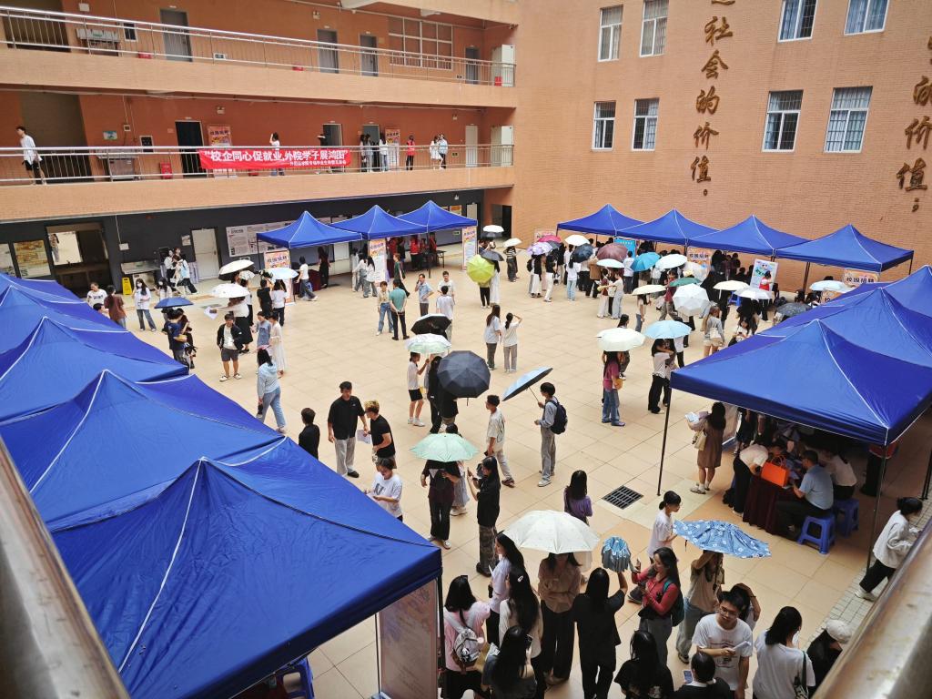 为有效搭建我院学生与用人单位之间沟通的优质平台,加强校企合作,提升毕业生就业质量,11月14日下午,外国语学院在7栋一楼天井顺利举行专场招聘会。本次招聘会由我院党总支书记、副院长冉海涛,党总支副书记蔡俊、罗子琳老师、学院专任教师等联合组织。21级和22级的同学积极参与。
