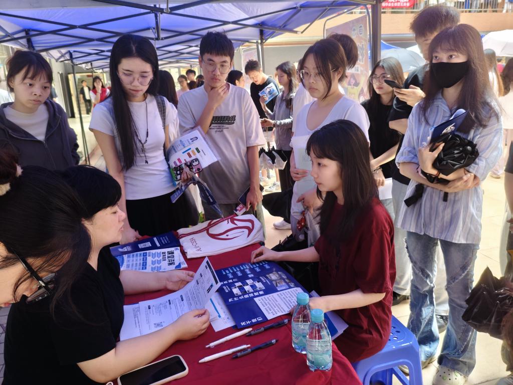 本次供需见面会活动迎来了众多带着丰富岗位资源的招聘单位,涵盖了教育、外贸、翻译、跨境电商等多个与外国语专业紧密相关的行业领域。活动现场气氛热烈,我院学子穿梭于各个展位之间,手持精心准备的简历,自信地与招聘人员交流,向招聘人员展示自己的能力和潜力,并认真询问他们有关岗位要求、薪资待遇、企业文化等方面的问题。