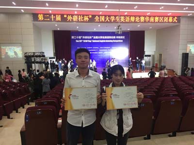 在沈悦英、戴容老师指导下,两位辩手在与华南理工大学、华中科技大学、中南大学、南方科技大学等著名大学的选手同场竞技,并在循环赛中两次与电子科技大学中山学院相遇,凭借出色的临场发挥、娴熟的辩论语言技巧、灵活的思辨能力,两次成功击败对手,显示了不俗的实力。