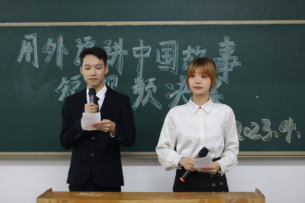 为进一步激励学生用外语讲好中国故事,传播新时代中国声音,展示新时代中国形象,培育学生的民族自豪感和家国情怀,4月24日下午,由广州理工学院外国语学院党总支部主办的“用外语讲中国故事,以红色育时代新人”大赛决赛在7栋418课室成功举办。外国语学院党总支书记冉海涛、党员服务中心指导老师袁琳琳、外国语学院学工组长刘鑫、辅导员张英坤、李昉、许娟娟、陆金银及教师白云峰出席此次决赛。本次大赛由刘若艺和黄俐主持。本次决赛还通过线上直播的形式展现了现场盛况,吸引了外国语学院各级学子积极观看比赛。