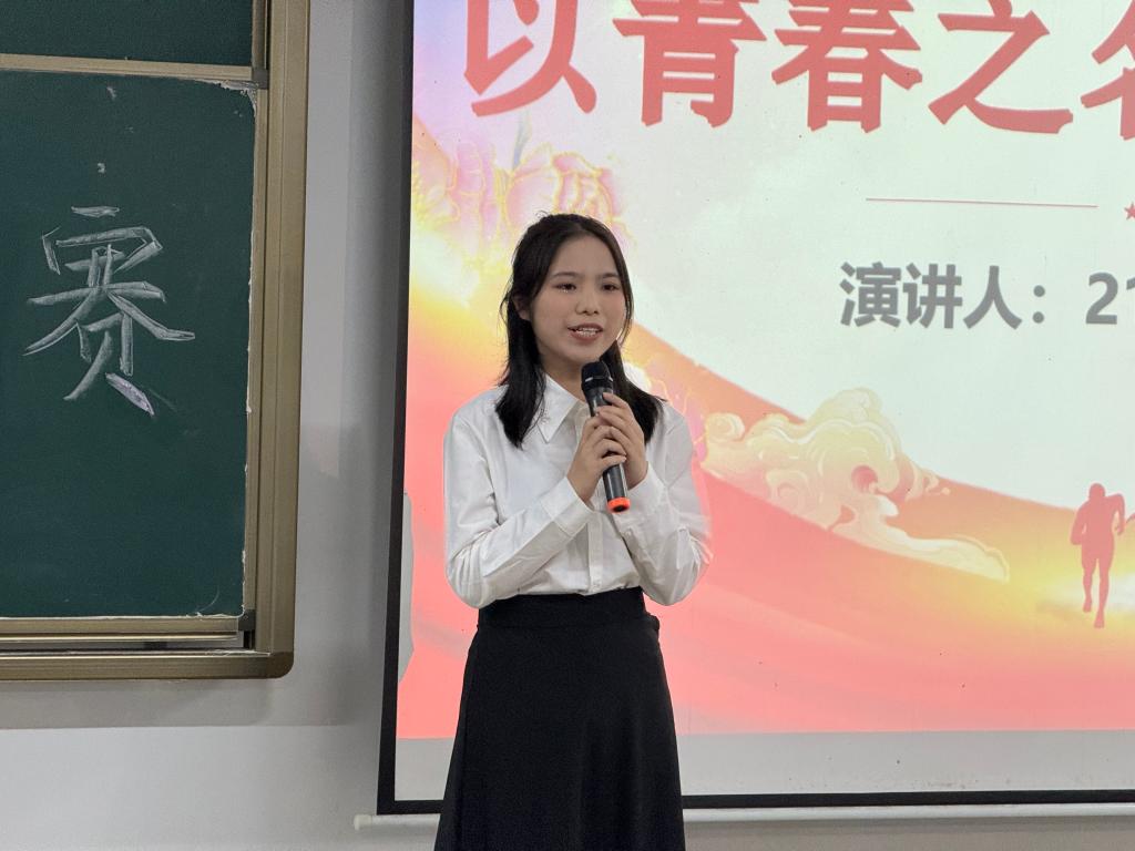 陈可怡选手以“凝聚奋斗力量,闪耀青春光彩”为题,引用陈独秀先生对青春的看法,提出生命的意义在于活着,活着的意义在于奋斗,只有奋斗的青春最美丽,呼吁青年应当用最热烈的青春踔厉奋发、努力奋斗,闪耀出人生的光彩!