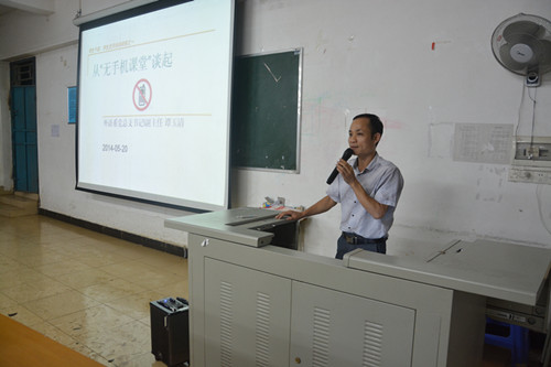 本次学生党员、学生干部培训特邀外语系党总支书记谭玉清书记作“从无手机课堂说起”专题培训,谭书记从多方面、多角度阐述如今校园“伏案一族”、“低头一族”过度使用手机的危害,向学生干部们列举了部分高校在倡导“无手机课堂“方面的做法,指出外语系试行“无手机课堂”是以养成良好的系风和学风为出发点和落脚点,要求全系党员和学生干部要带头先行,通过班级试点,日常督察,逐步展开。谭书记还对学生干部的角色定位与转换进行了详细的解说,引导我系学生干部、学生党员学会自我定位,找准角色,