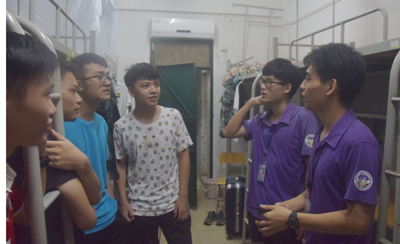 团学成员依次走访了各个新生宿舍,在与新生的交谈中,对新生宿舍环境有了初步了解,确保宿舍内部水电的正常供应以及电器安全保障,了解新生们宿舍的生活状况,并就一些宿舍问题进行解答。提醒新生注意人身财产安全,在宿舍提高警惕,学会防盗防骗。