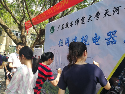 (通讯员:陈晓霞)6月28日上午,学校在七栋综合教学楼前举行了“违规电器警示展”活动。我院团学工作人员积极参与宣传工作,她们认真宣传,细心给每一位同学介绍安全与违规等方面的有关问题、并对同学们的提问进行耐心的解答,引导学生签名版留言签名等,受到学校相关部门一致好评。