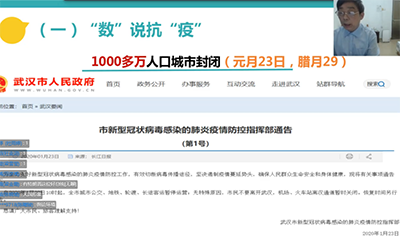 田祥斌院长解读了什么是新型冠状病毒肺炎及其危害和病毒对国家、世界造成的影响,讲述了新型冠状病毒肺炎的管控类型、诊疗方案和出院标准,并强调同学们做好防护工作的重要性以及如何做好防护工作,同时提到中国的疫情防控力度和措施令人印象深刻并通过“数字”“图画”详细讲述了中国政府对抗击疫情所作出的一系列努力,还列举了钟南山、李兰娟等白衣战士和逆行者的奋勇拼搏和无私无畏的光荣事迹,也阐述了应对疫情过程中中国的制度优势和文化优势愈发凸显。此外,田祥斌院长根据自身经历提到,虽然疫情对我们造成了一定的损失,限制了我们的出行,但其也能够促使我们成长,让我们更加了解了健康知识、社会知识、法律知识以及丰富了我们的历史知识。