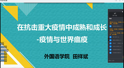 (通讯员:胡碧锋)4月22日,外国语学院田祥斌院长通过线上直播的形式,以“在抗击重大疫情的成熟和成长-疫情与世界瘟疫”为题开展了院长第一课的讲授。