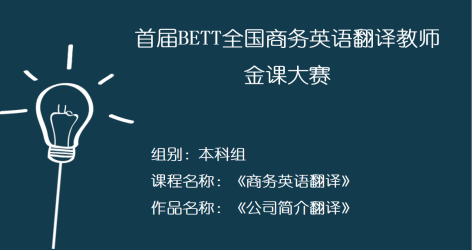 (通讯员:钟莹)近日,“首届全国商务英语翻译教师金课大赛”公布比赛结果,我校外国语学院申丹教授和邹睿敏老师组建的团队喜获比赛二等奖。该赛事由全国商务外语考试办公室和全国商务外语专业委员会举办,旨在更好地推动全国商务英语翻译教育改革,促进高校外语教学发展,培养更多国家需要的国际化复合型人才。此次商务英语翻译教师金课大赛受到了各地高校教师的广泛关注和积极参与,我院教师团队在200多件参赛作品中脱颖而出获得二等奖,既是教师对商务英语翻译课程教学的经验总结和探索创新,也促进了教师专业素养和教学技能的提升。在历届全国大学生商务英语翻译竞赛中,外国语学院的学生们也曾取得了全国决赛特等奖、一等奖等优异的成绩。商务英语翻译教学在以赛促学、赛证结合、师生共赛的教学模式指导下取得了良好的教学成效。