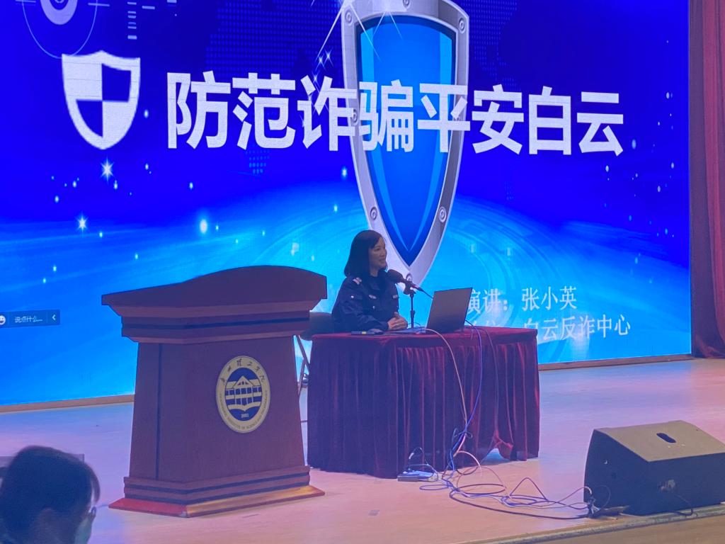 随后,白云区反诈骗宣传专员张警官向我们详细地介绍了电信网络诈骗的六种类型:网上购物类、冒充客服类、网上刷单类、网上贷款类、冒充公检法类、网络交友类,并与我们分析了诈骗分子诈骗所针对的人群以及诈骗的手段。张警官用具体的事例告诫同学们在网络上购物或买卖游戏相关事物要在有安全认证的官方平台上进行交易;不相信网络上刷单快速赚钱的说法;网上交友需谨慎,不轻信陌生人;不轻易暴露手机卡、银行卡等个人信息;遇到陌生人或朋友借钱一定要再三核实;不接通境外来电,以及回复来历不明的短信和点击来历不明的链接。张警官还向同学们推荐了国家反诈中心APP,介绍了国家反诈中心APP内的来电预警功能,并告诉了同学们白云区派出所的电话,以及向同学们普及了 “0”字开头和“1”字开头是境外电话,“96110”开头的电话是全国统一的预警劝阻电话。
