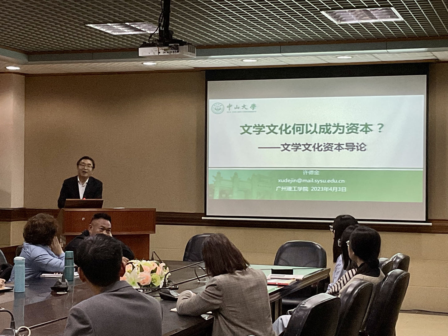 4月3日下午,外国语学院特邀中山大学外国语学院院长许德金教授在7-301会议室开展题为“文学与文化何以成为资本”的学术讲座,外国语学院部分教师参与。讲座由外国语学院院长田祥斌主持。