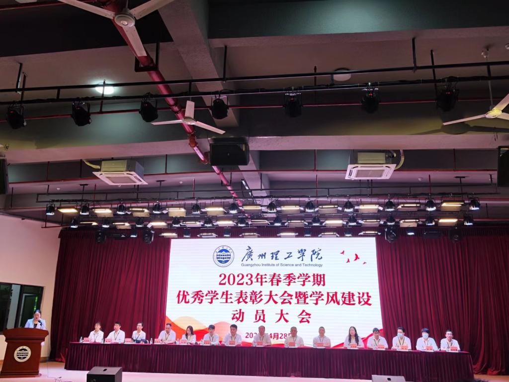 为表彰十佳、先进班集体及优秀班长等优秀集体及个人,发挥榜样示范引领作用,广州理工学院于2023年4月28日在1号报告厅召开2023年优秀学生表彰大会暨学风建设动员大会。出席的领导老师有党委副书记、副校长肖海,党委工作部部长、学生处处长张志红,保卫处处长陈朝阳,校团委书记彭文刚,各二级学院党总支书记,各院辅导员等。本次大会由学生处副处长肖柳主持。我院各班团支书兼班长及部分纪律委员参会。