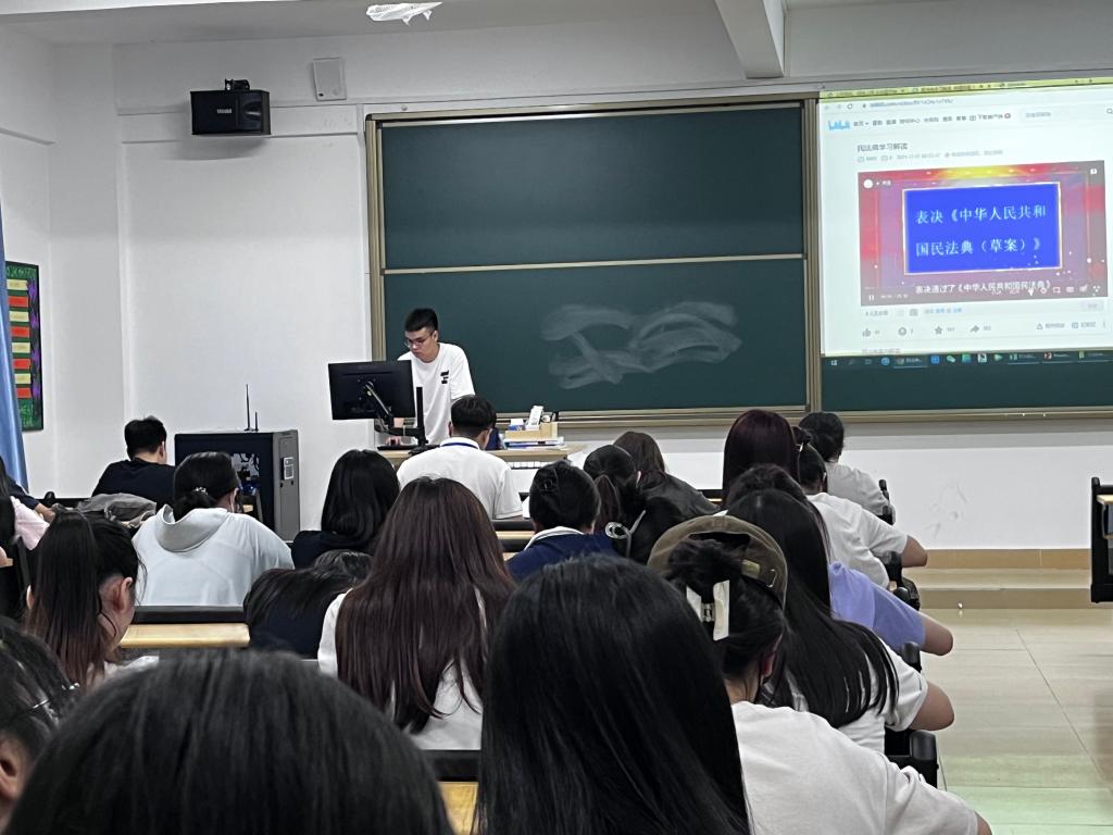 为了让同学们进一步了解民法典,培养浓厚的学法氛围,外国语学院于5月28日晚在六栋及七栋各班会课室开展“学习民法典”主题班会。