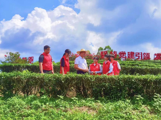 为响应“百千万工程”,助力乡村振兴工作部署,外国语学院党员服务中心“语”党同行·志愿服务队在外国语学院党总支书记冉海涛、外国语学院学生党支部组织员袁琳琳老师以及余蓝曦老师的指导下,队长朱嘉梅同志的带领下,于7月5日前往湛江市廉江市长山镇进行实地考察调研,切身探访茶企、调研茶品、品读茶文化。廉江市长山镇谷邦村村委党支部书记廖明纪、长山镇镇党委委员团委书记陈景华、团委副书记林荣勰以及镇团委干部廖鸿鑫莅临指导讲解。
