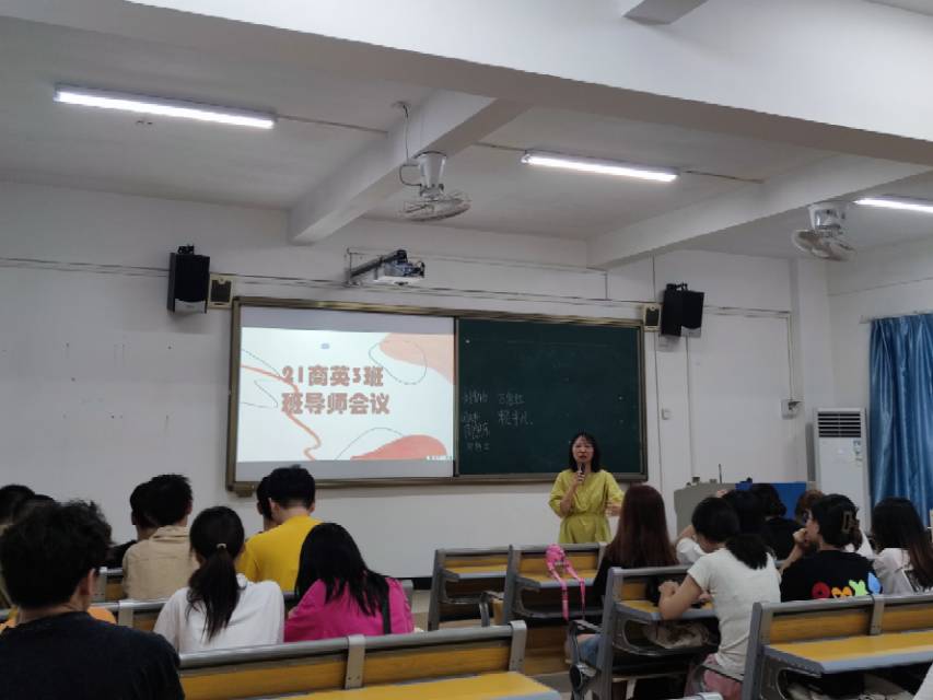 会议伊始,各班的班导师先进行了简单的自我介绍,并欢迎新同学们进入外国语学院学习。随后班导师们强调了学校学院的各项规章制度,希望同学们能够遵守校规校纪,做一名遵纪守法的学生。紧接着,班导师们就专业学习的策略与方法,专业实训、实践与考证的选择等和同学们进行了分享,也勉励同学们做好学习规划与职业规划,积极参与到学校组织的专业比赛中,“以赛促学”,“以学提能”,通过考证和比赛的形式不断拓宽专业知识面,提高专业素养,成为外语型人才。此外,班导师们还就学习压力、挫折应对与心理疏导等进行了讲解,希望班上同学们能以积极的心态面对困难与挫折。