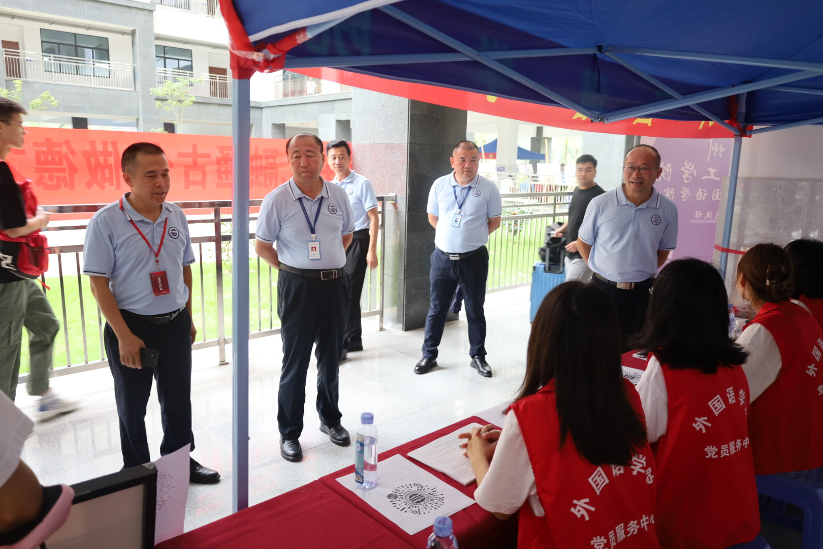 为迎接新校区23级普高新生,外国语学院党总支书记冉海涛和党总支副书记蔡俊带队由教师和志愿者组成的迎新队伍于9月10日6点前往惠州校区开展迎新工作。