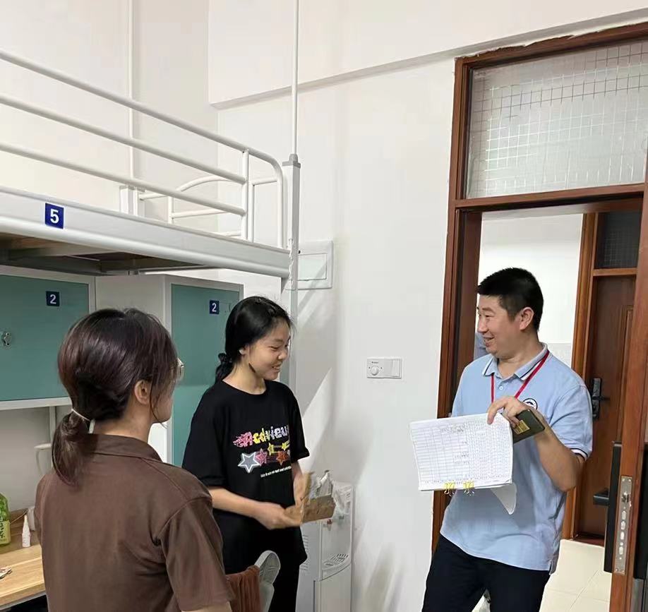 在走访过程中,蔡书记与新生们热情交流,了解其开学报到情况并询问相关入学感受。针对同学们关心的生活及学习上的问题,蔡书记和辅导员老师们进行了耐心解答。进入大学后,面对新的环境和机遇,不少同学感到期待,但又有些茫然和不安。因此老师们鼓励大家要相信自己,树立目标,积极向上,收获学识和友谊,勇敢追逐自己的梦想。此外,蔡书记和辅导员老师们还特别提醒同学们要防范诈骗,不轻信推销,守护好安全。新生们表示:“老师们的到来让我们感受到了学院的关怀和温暖”。